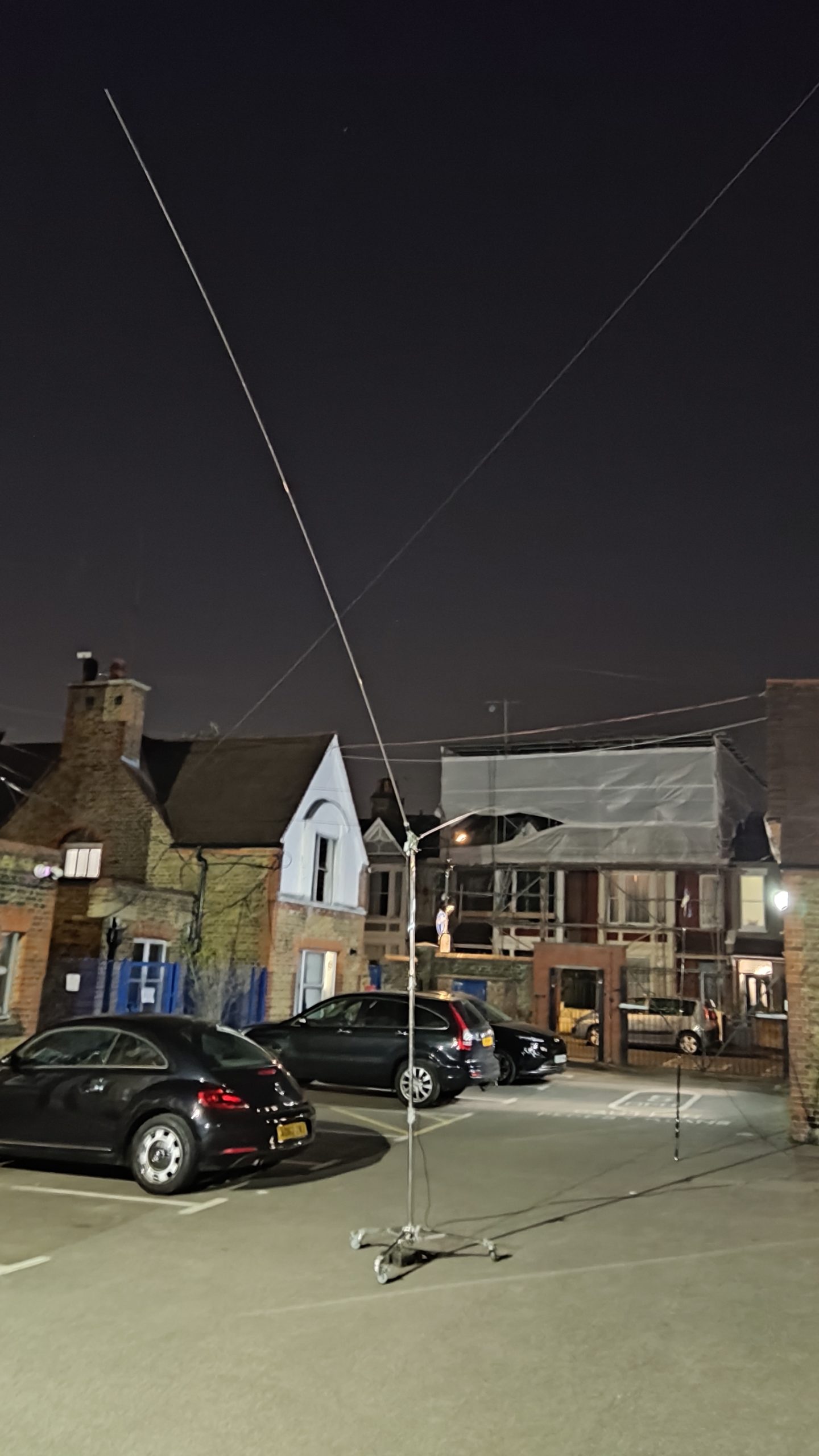 Alastair tried out an end-fed dipole, JJ tried the DP-200 on a taller tripod which David provided, and Gregor brought a Windom that he’d had for years but never tried … and it was very successful.